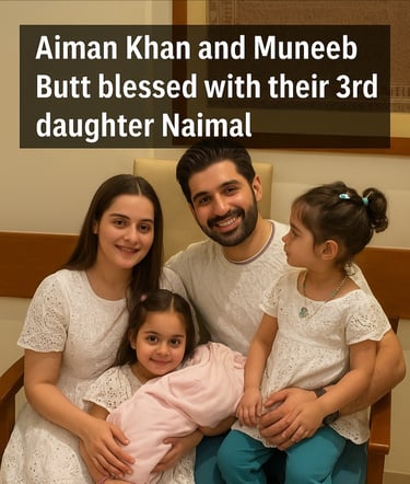 Pakistani entertainment’s most admired couple, Aiman Khan and Muneeb Butt, have shared heartwarming news with their fans – the arrival of their third daughter, whom they have named Naimal. The announcement instantly created a buzz on social media, where the couple is loved by millions of followers for their real-life bond and family moments.